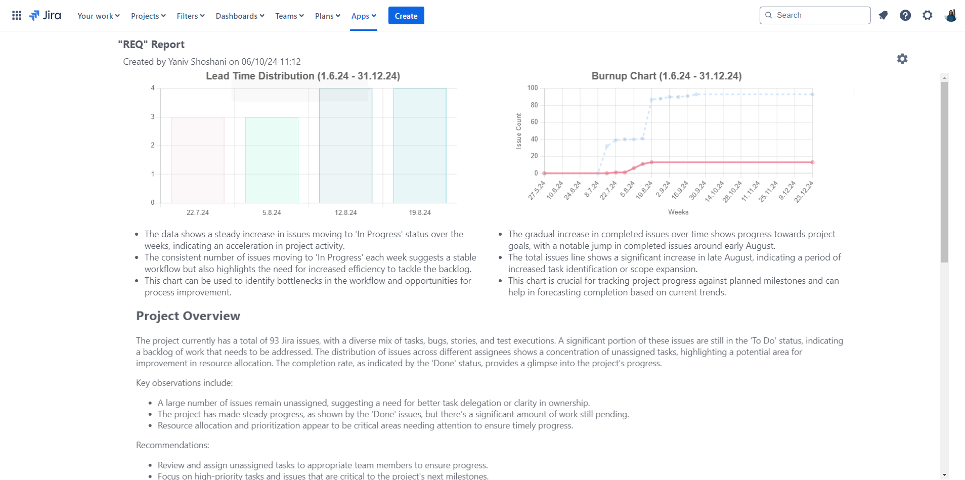 By transforming JQL queries into comprehensive reports and visualizations, AIR PM offers actionable insights that help teams prioritize tasks, identify potential issues, and streamline processes.
